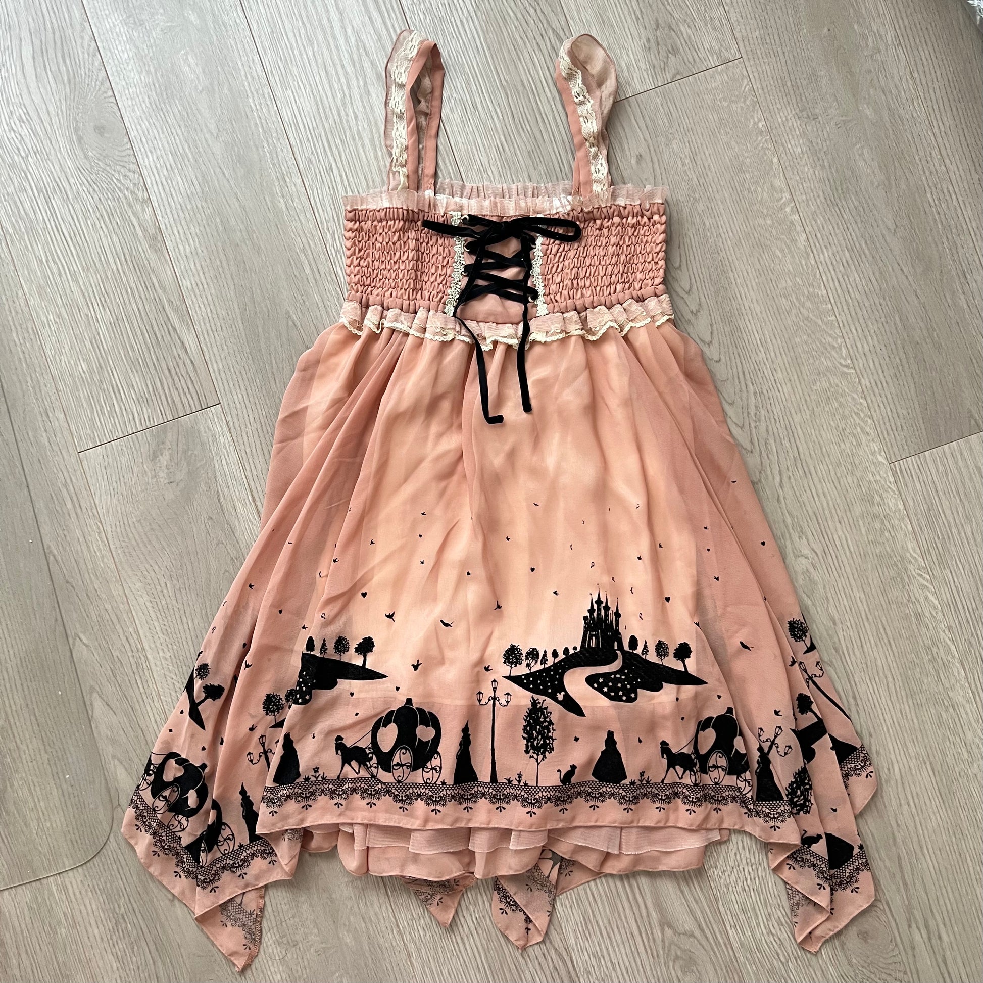cute babydoll dress with lace and layers, pretty ribbon and flowy super light asymmetrical silhouette with a fairytale print.