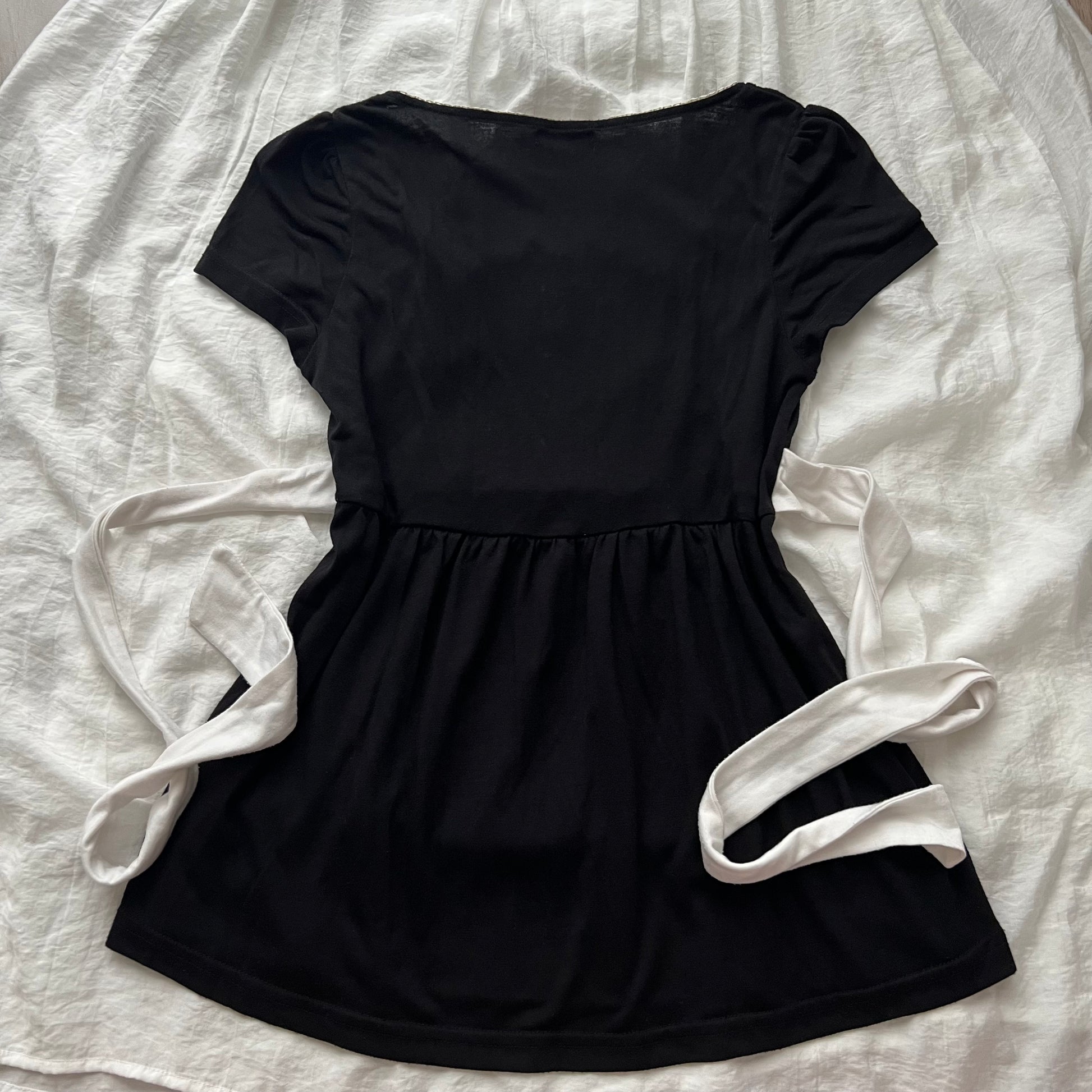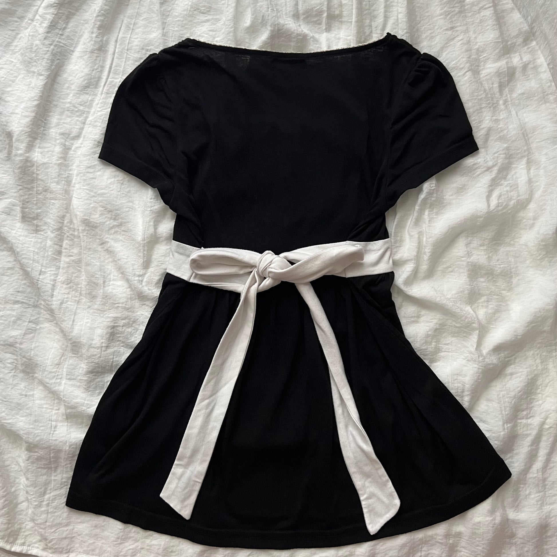 my FAVORITE top, Japanese brand black top with a white adjustable waist ribbon you can tie either front or back, cute buttons and babydoll shape