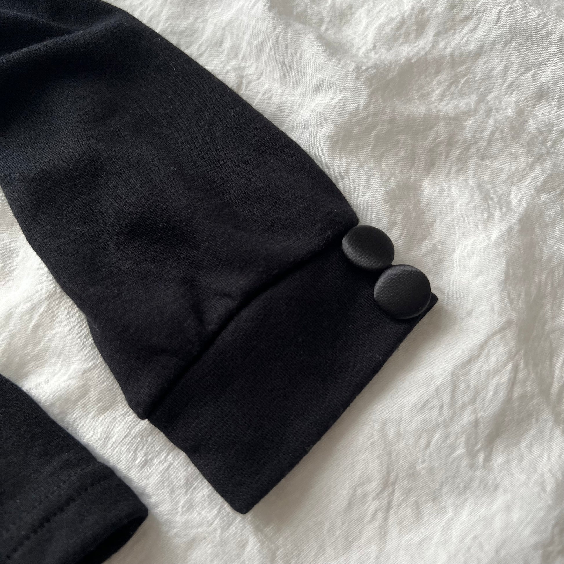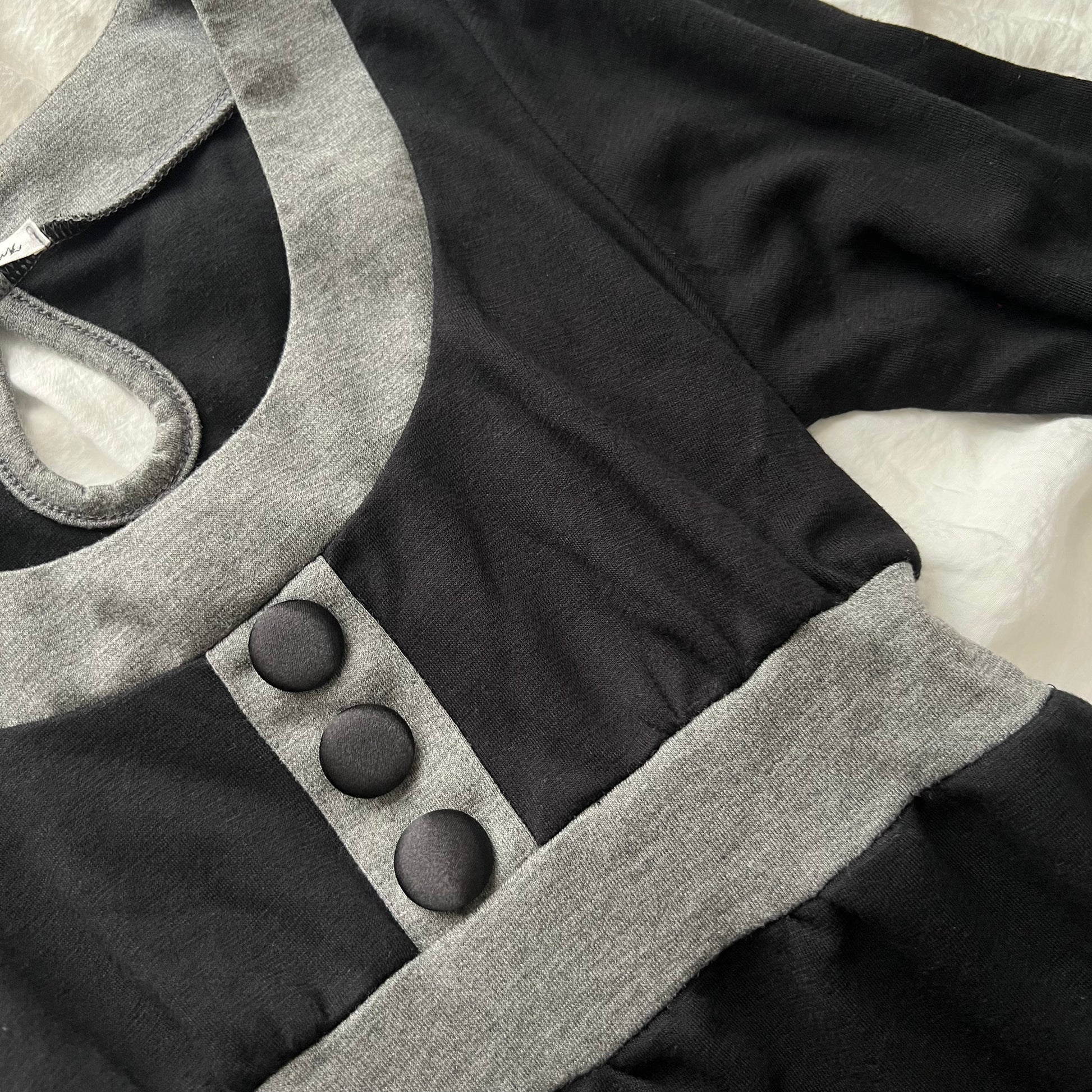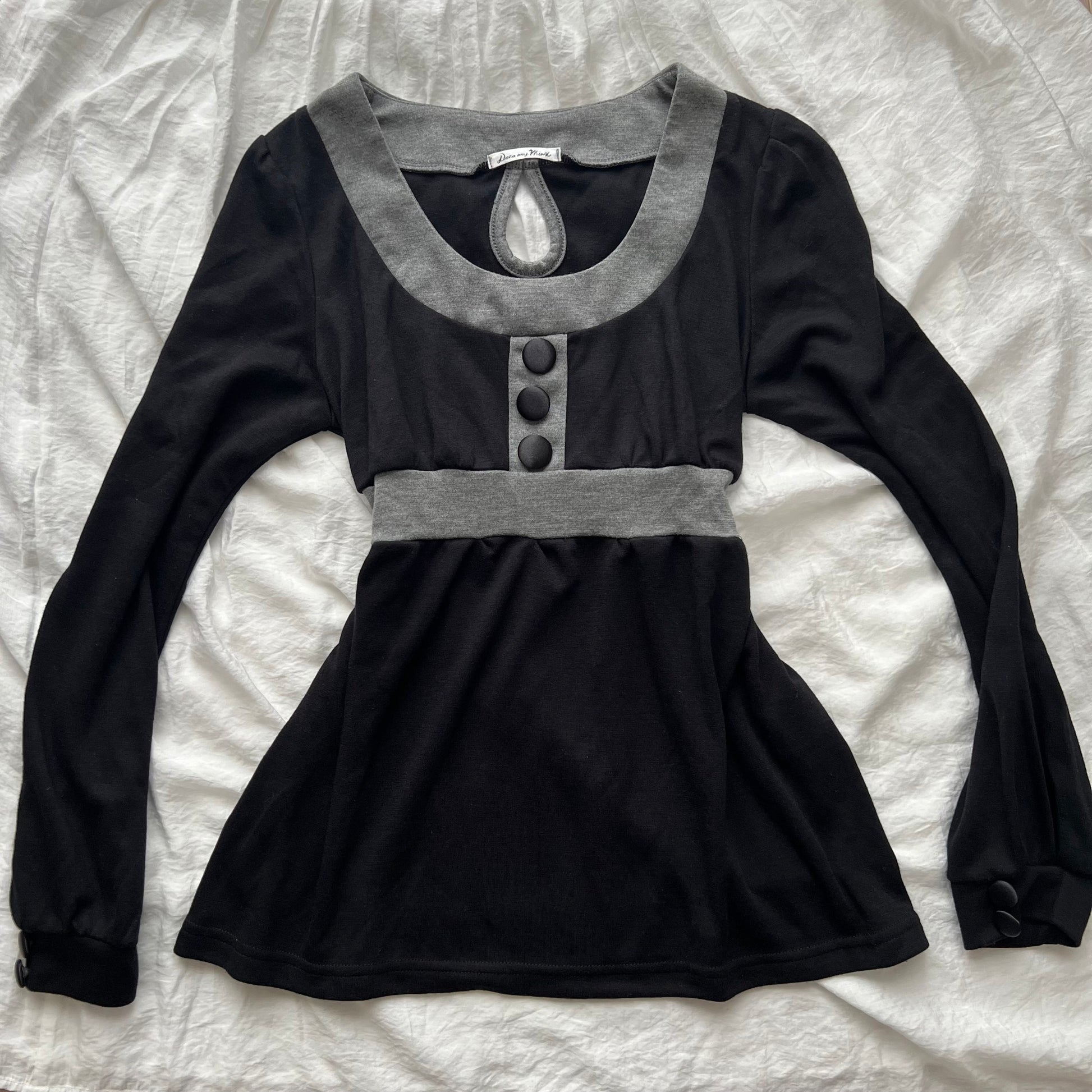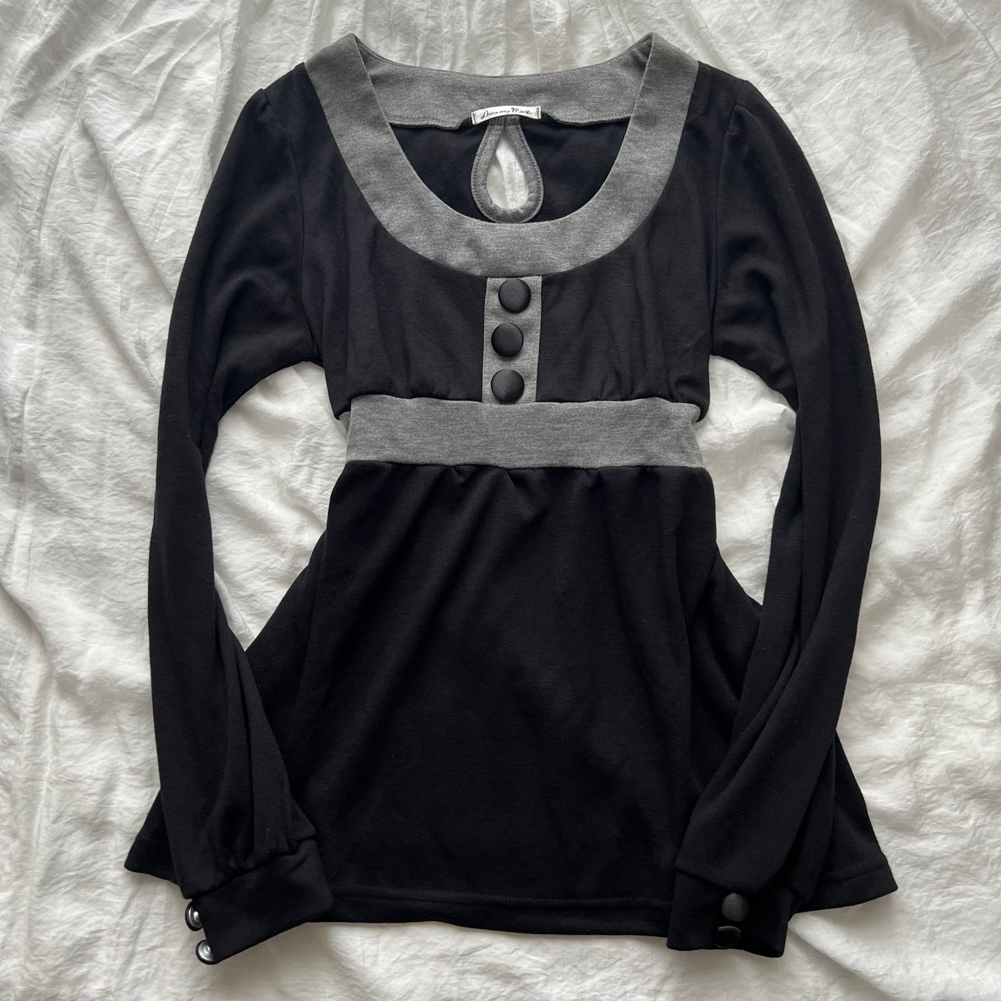 Super cute black top with grey details, cute buttons, there’s also a place to put on a waist ribbon if you’d like! Cute babydoll vibe