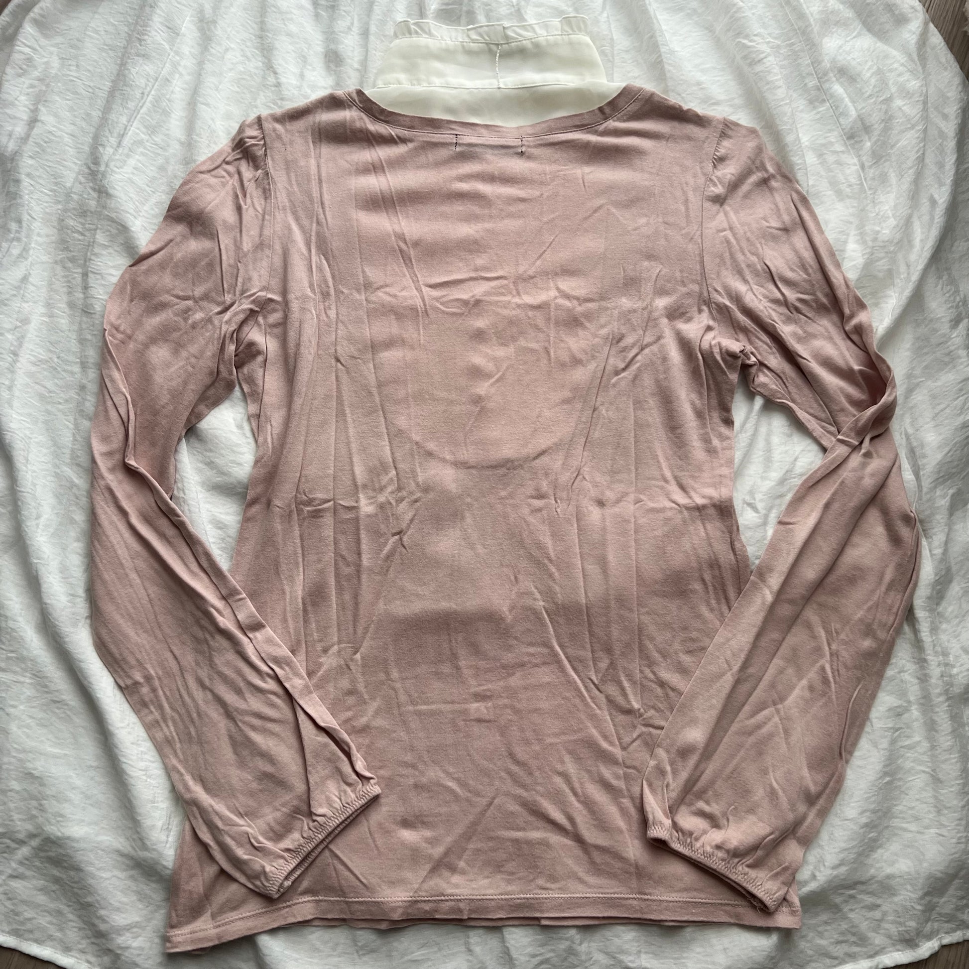 Lone sleeves Japanese pale pink top, has a white milkmaid layered look with buttons and a frilly neckline. Comes with an extra button!