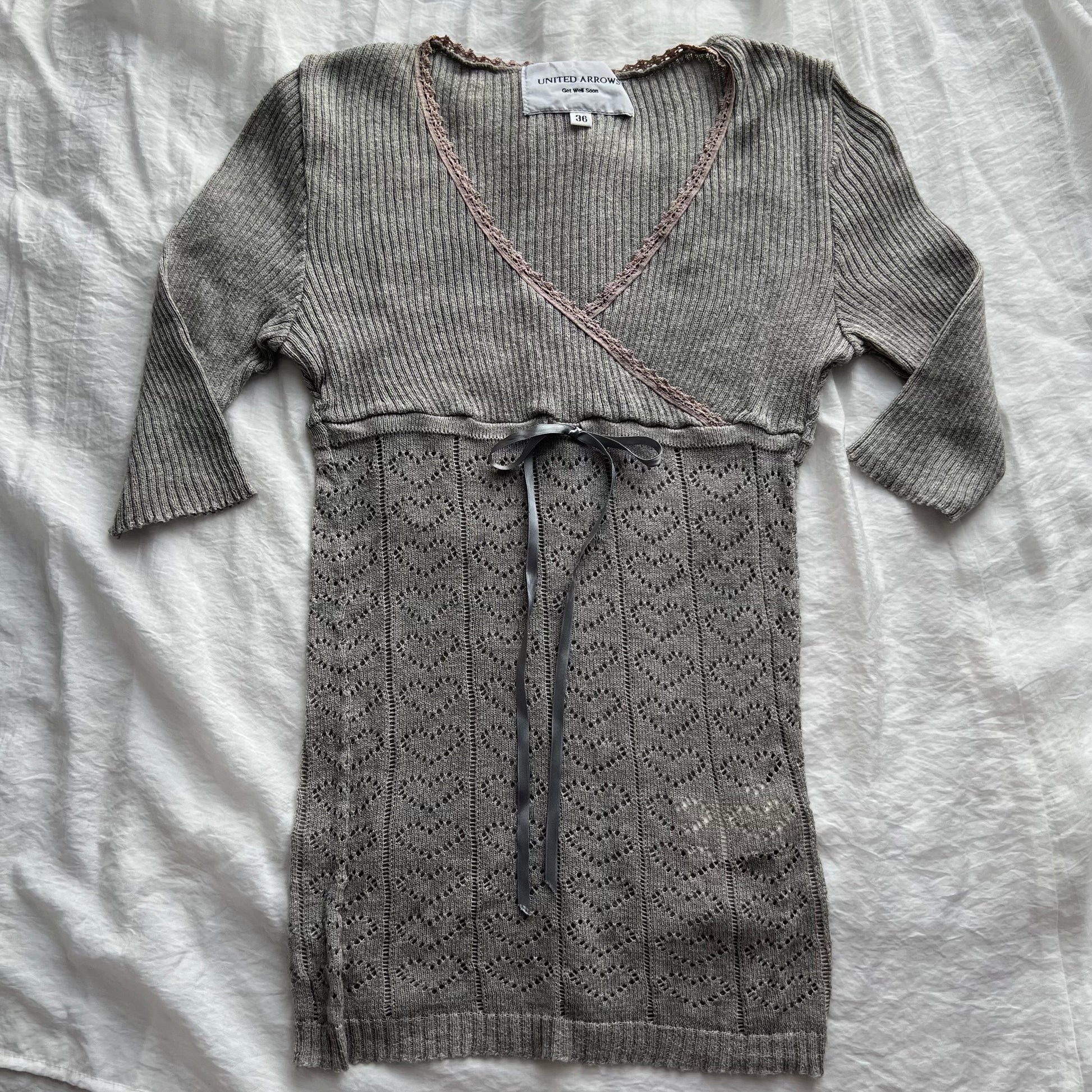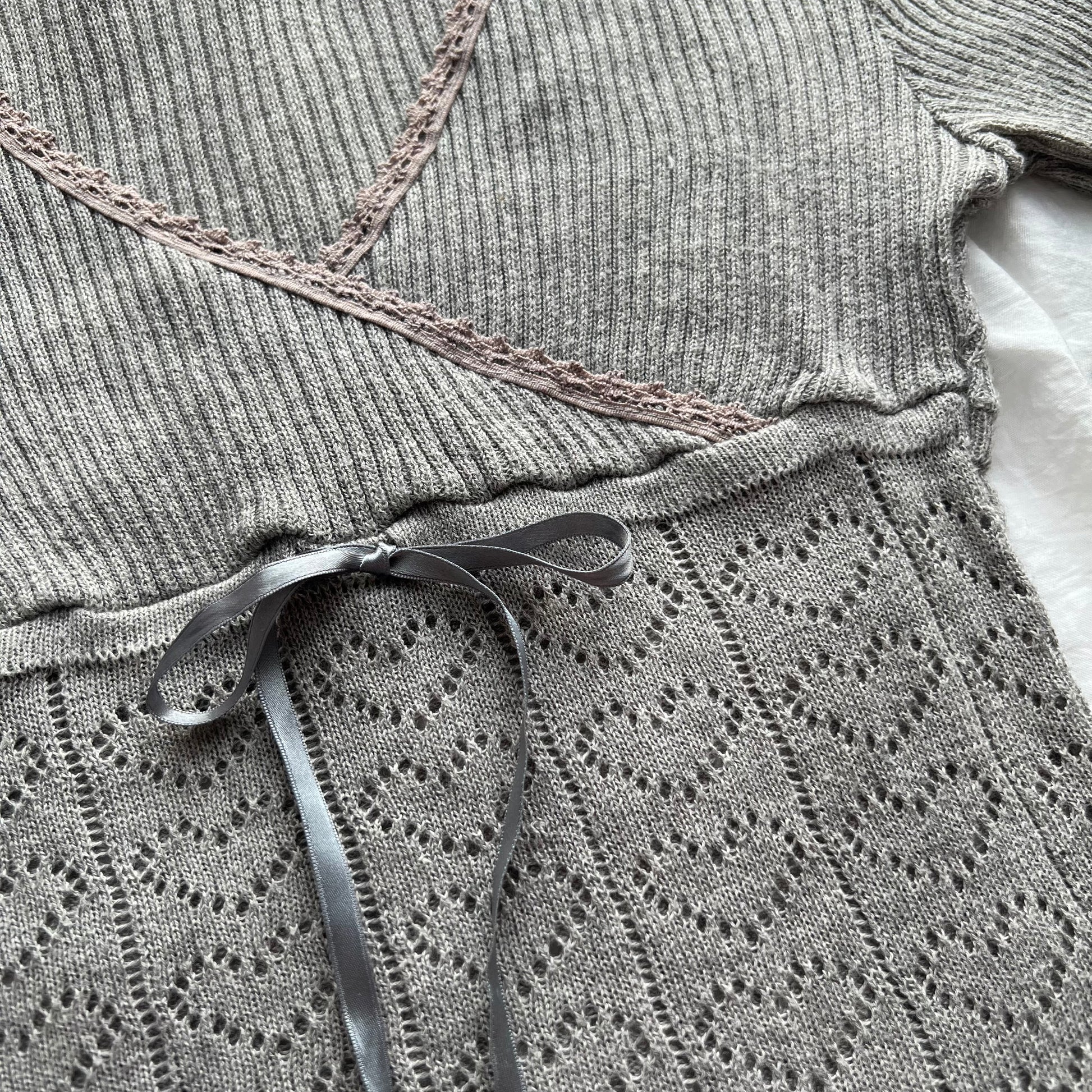 Muted gray color, has such a cute design with a waist ribbon and heart shaped details! Has a lace trim neckline