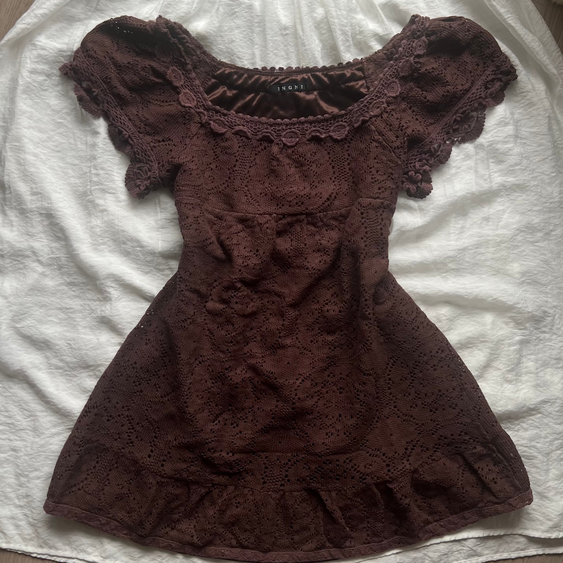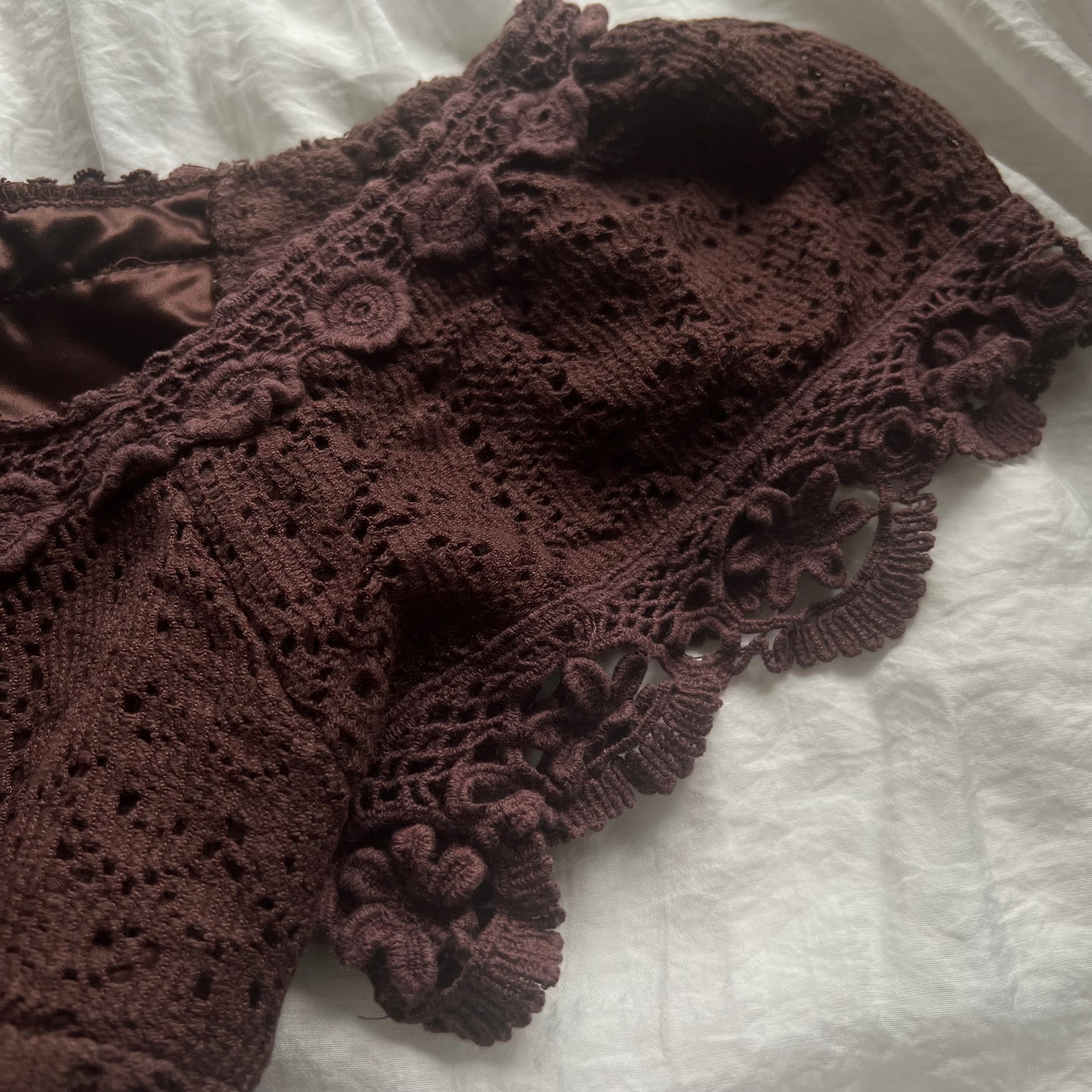 Iconic Japanese brand INGNI chocolate brown babydoll tunic top, beautiful lace details, cute sleeves and flared hem!