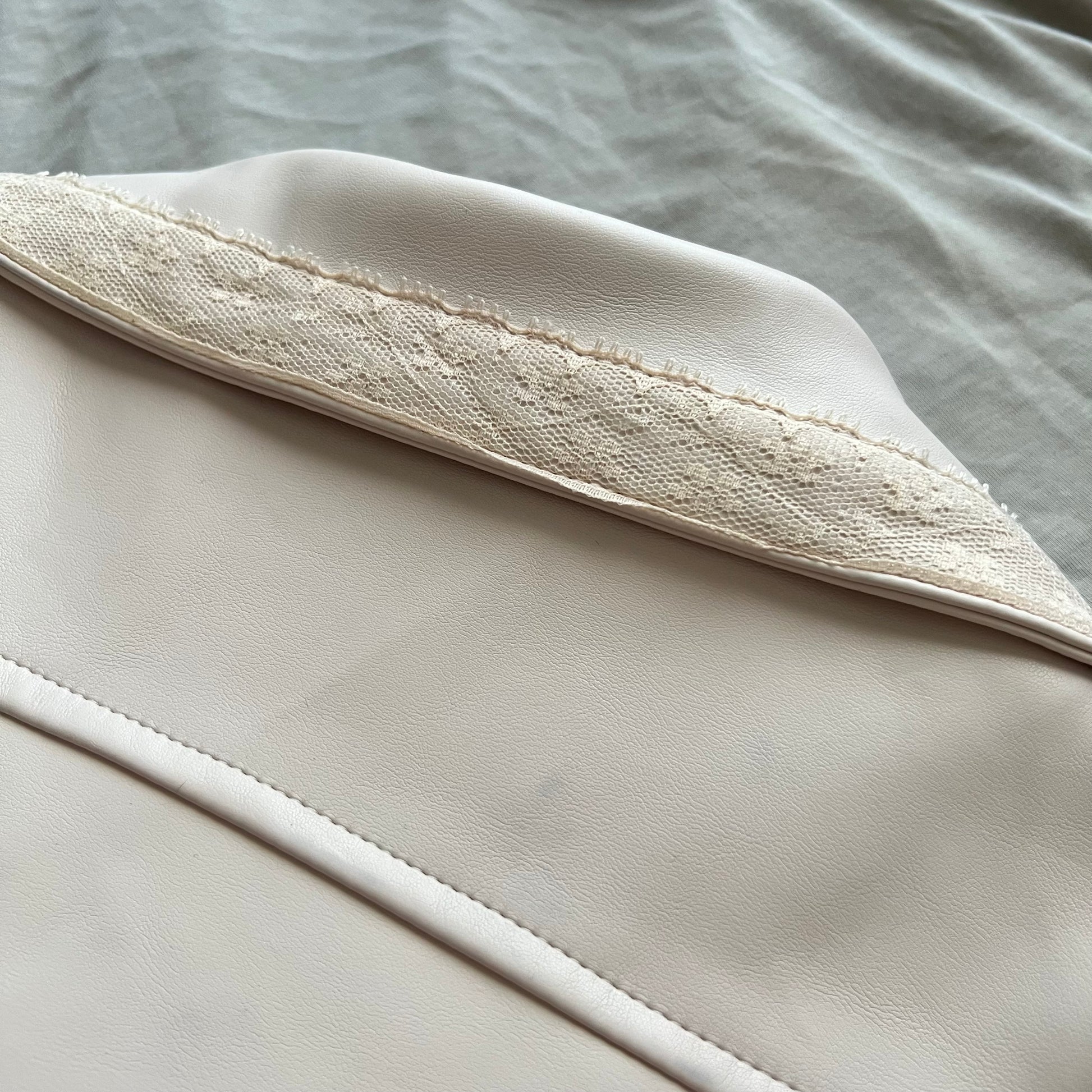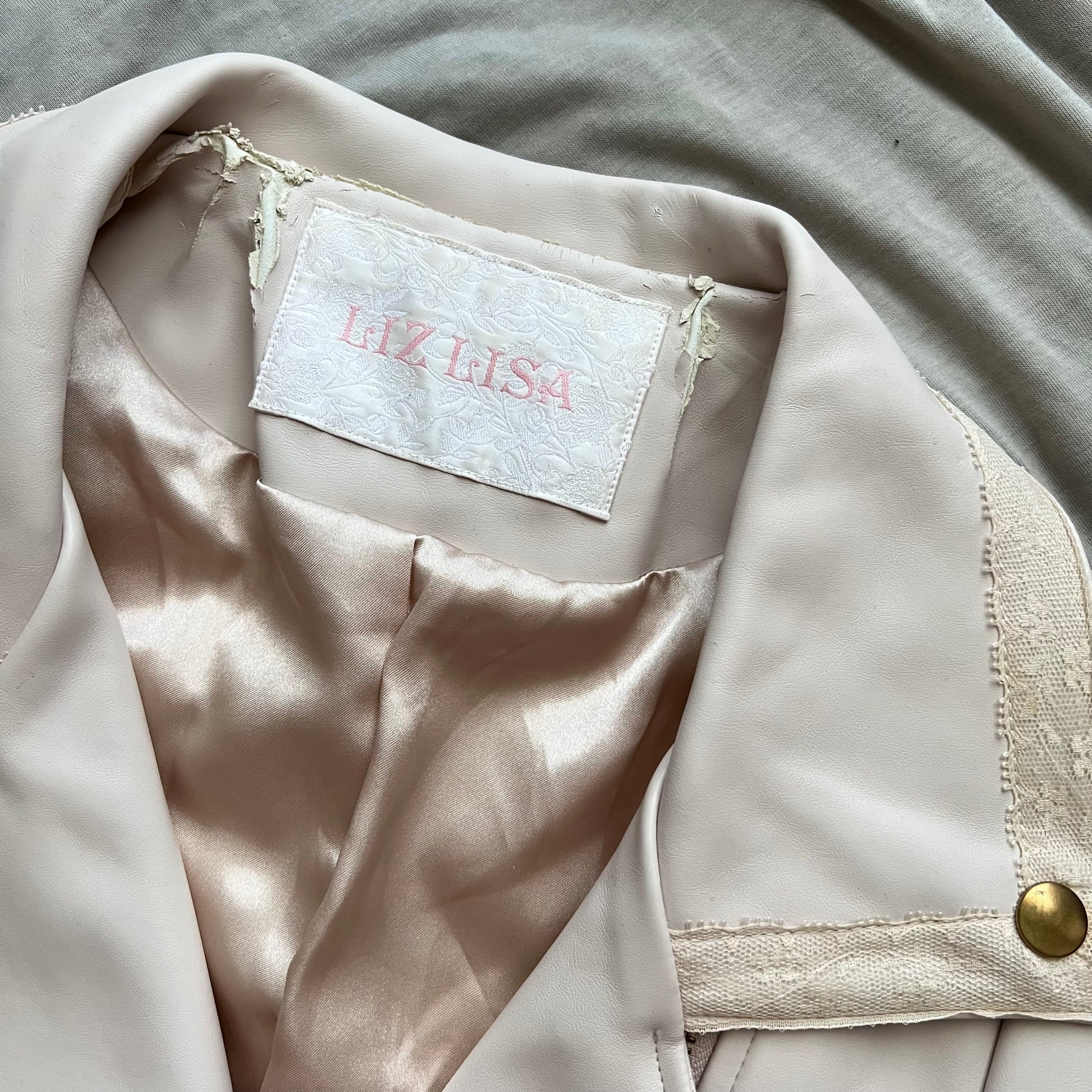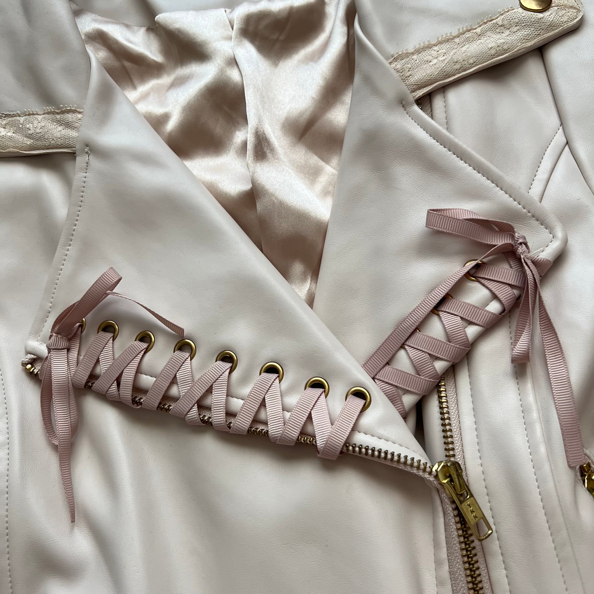 Liz Lisa pinkish cream faux leather jacket with pink lace up ribbons and lace detail